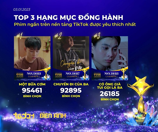 Giải thưởng dành riêng phim ngắn TikTok ở hạng mục Đồng Hành cũng khiến nhà làm phim trẻ hào hứng. Tính đến ngày khép cổng bình chọn, phim ngắn Một bữa cơm (95.461 vote) đang vươn lên dẫn đầu cúp Phim ngắn trên nền tảng TikTok được yêu thích nhất, bám sát theo sau là Chuyến đi của ba (92.895 vote) và Có ông già tui gọi là ba (26.185 vote). Mặc dù là những tên tuổi mới trong nghề nhưng sự nỗ lực để được ghi nhận tại một giải thưởng danh giá của các đề cử rất ấn tượng.