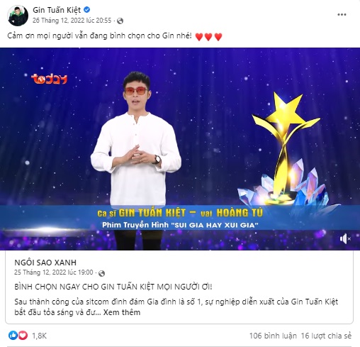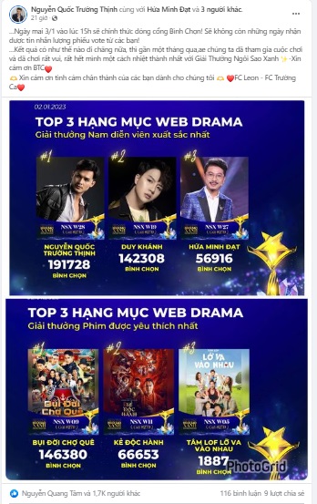 Diễn viên Trường Thịnh thông báo đến người hâm mộ về thời gian đóng cổng bình chọn