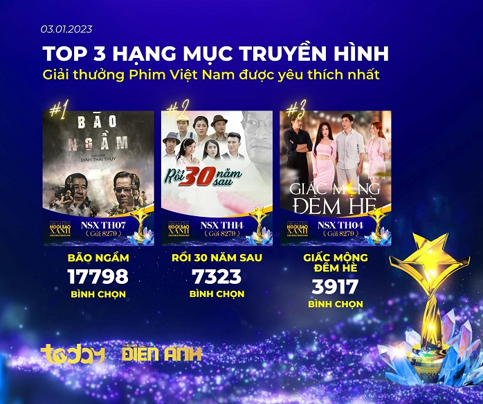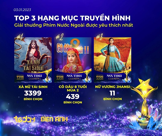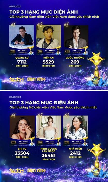 Cùng cập nhật nhanh top 3 của các hạng mục giải thưởng do khán giả bình chọn, tính đến 11h00 ngày 03/01/2023.