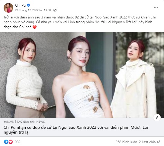 Ca sĩ – Diễn viên Chi Pu bày tỏ niềm vui khi trở lại điện ảnh sau 3 năm và nhận được 02 đề cử tại Ngôi Sao Xanh