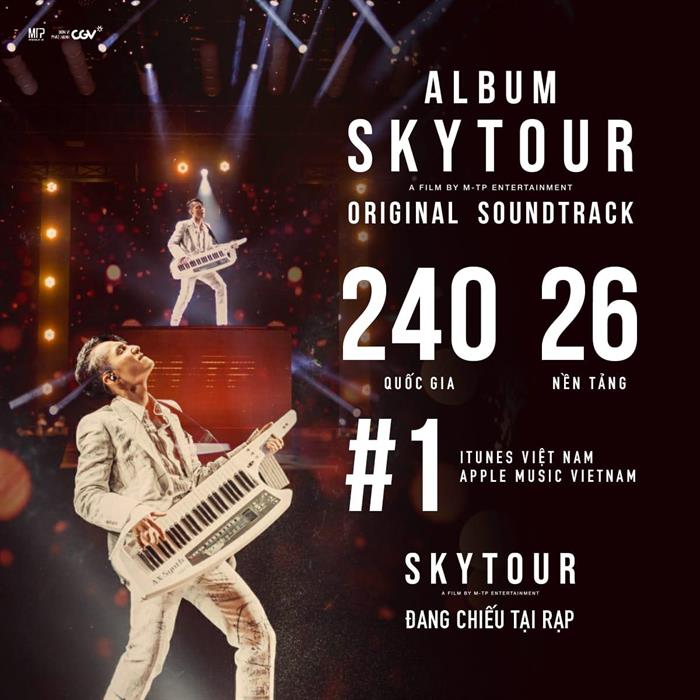 Đặc biệt, album nhạc phim SKY TOUR Movie còn lọt vào bảng xếp hạng những album được nghe nhiều nhất trên toàn thế giới của iTunes ở vị trí thứ 83. Đây cũng là album nhạc Việt duy nhất nằm trong Top iTunes Album ở thời điểm hiện tại.