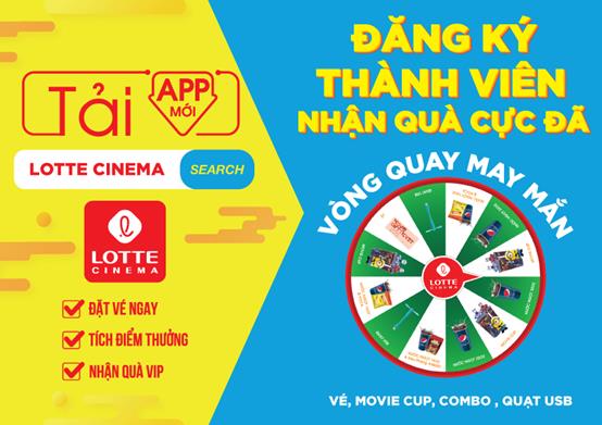 Ngoài ra Khách hàng tải App Lotte Cinema hoặc đăng ký thành viên sẽ có cơ hội tham gia vòng quay may mắn với nhiều phần quà hấp dẫn như: Nước ngọt, ly phim, đậu phộng, snack, vé xem phim miễn phí,…