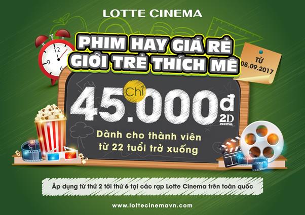 Để đáp ứng nhu câu điện ảnh của các bạn học sinh sinh viên thì chương trình ưu đãi giá vé 45k cho thành viên dưới 22 tuổi sẽ áp dụng xuyên suốt từ thứ 2 đến thứ 6.