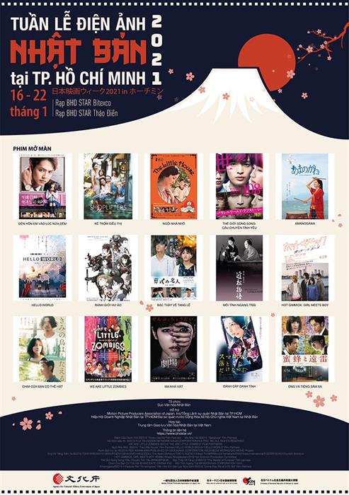 Tintuc - “Tuần lễ Điện ảnh Nhật Bản 2021 tại Thành phố Hồ Chí Minh” do Cục Văn hóa Nhật Bản tổ chức sẽ được triển khai trong vòng một tuần kể từ thứ bảy, ngày 16/01/2021. 2 địa điểm được lựa chọn diễn ra là BHD Star Thảo Điền và BHD Star Bitexco tại Thành phố Hồ Chí Minh.
