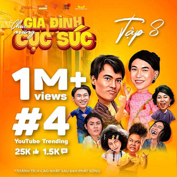 Gia Đình Cục Súc được yêu thích khi “chễm chệ” trên top 4 Trending YouTube và đạt 1 triệu lượt xem chỉ trong 64 giờ phát sóng.