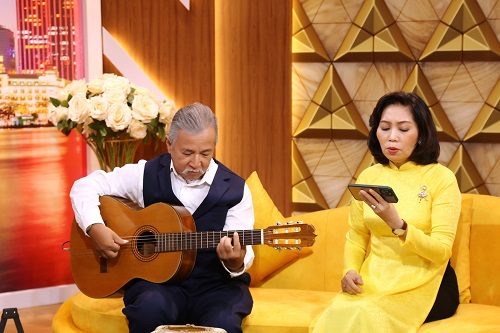 Thế nhưng nhờ tiếng đàn guitar mà hai vợ chồng tìm thấy nhau. Chú Hiệp cho biết trong một vài buổi tối bị cúp điện thì chú mới ngồi trong nhà và đàn guitar và cô Trang ở nhà bên mới nghe được tiếng đàn ấy. “Sau đó mình đi ngang qua mình mới cố gắng nhìn nàng một cái rồi nhoẻn miệng cười”, chú Hiệp còn nhớ như in điệu bộ của mình khi ấy. Cô Trang tiếp lời rằng khi thấy chồng cười với mình thì vì phép lịch sự nên cô cũng cười và gật đầu đáp lại. Chính nụ cười ấy đã kéo khoảng cách giữa hai người thêm gần nhau hơn để rồi có những cuộc hẹn đi bộ nói chuyện tâm tình.