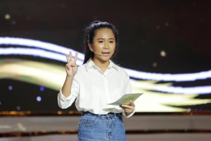Nữ sinh giàu thành tích Thảo Vy: “Trước khi phán xét người khác, hãy vệ sinh cửa sổ tâm hồn của mình”. Trong phần thi này, Thảo Vy nhận được 54 điểm.
