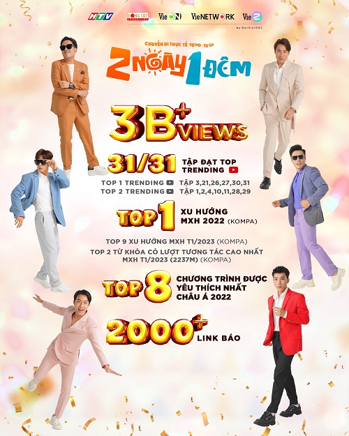 Trên mỗi chặng hành trình của mình, ê-kíp 2 Ngày 1 Đêm còn phải bất ngờ với sự chào đón nồng nhiệt của khán giả trên các tỉnh thành, ví như sự kiện hủy ghi hình vì người hâm mộ đến quá đông tại An Giang, đã ít nhiều cho thấy sự yêu thương của khán giả dành cho chương trình có vị trí Top 1 Xu hướng Mạng Xã hội 2022, Top 2 Từ khóa có lượt tương tác cao nhất Mạng Xã hội Tháng 1/2023.
