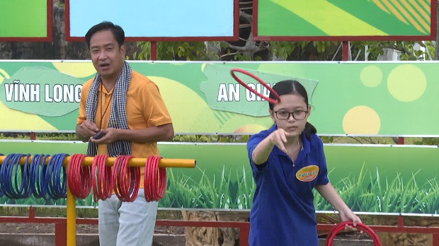 Trò chơi đầu tiên diễn ra với sự tranh tài của chị Hương và cháu Trân – con gái đại diện cho gia đình chị Hường, trò chơi mang tên Ném vòng. Bắt đầu phần thi đối kháng ngay từ vòng đầu tiên khiến hai người chơi vô cùng hồi hộp. Bên cạnh đó, các em còn phải tính toán xem với số lượng vòng có hạn thì nên tích góp từng điểm số hay mạo hiểm ném vào trụ có cờ ở xa nhất để đạt điểm tuyệt đối. Và chính sự chênh lệch ít nhiều về tuổi tác đã tạo nên lối chơi khác biệt giữa hai em, Hương chọn cách chơi an toàn chắc chắn, còn Trân trẻ tuổi hơn lại chọn chiến thuật tấn công mạo hiểm hơn.