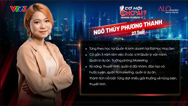 Ngô Thúy Phương Thanh là một nữ ứng viên có hoàn cảnh đặc biệt. Trong lúc giới thiệu bản thân với các sếp, nữ ứng viên bất ngờ tiết lộ cô không có bằng Đại học vì nghỉ ngang khi học năm 4 ngành Quản trị Kinh doanh do gia đình bị phá sản và đặc biệt hơn nữa, là cô có đến…3 quả thận.