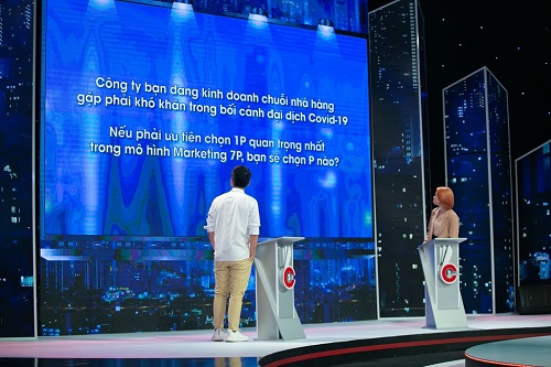 Chủ đề tranh luận ở vòng 1 – vòng Đối mặt dành cho ứng viên Phương Thanh và Hàng Vĩ Cẩm là: “Công ty bạn đang kinh doanh chuỗi nhà hàng và đang gặp phải khó khăn trong bối cảnh đại dịch Covid-19. Nếu phải ưu tiên chọn 1P quan trọng nhất trong mô hình Marketing 7P, bạn sẽ chọn P nào?”.