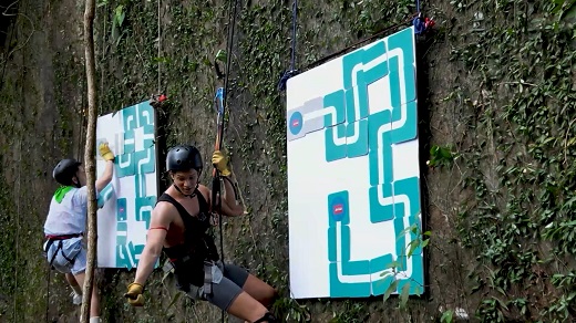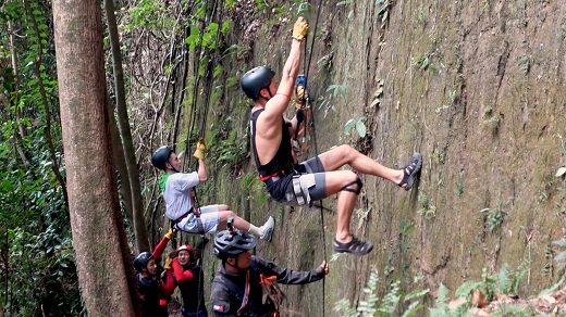 Robin của Đội Đỏ và Dino của Đội Xanh Lá tranh tài cùng nhau tại thử thách này, Trấn Thành phải than lên “Trời ơi nó khó!” khi thấy cả hai thực hiện nhiệm vụ đu dây. Địa hình thẳng đứng kèm với vách núi bám rêu trơn trượt khiến các thí sinh phải chật vật và dùng rất nhiều sức ở cánh tay để có thể leo đến vị trí mô hình, đây được xem là thử thách khó nhất trong chặng đua tại Phú Quốc lần này.