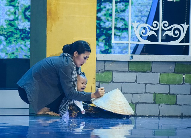 Vĩnh Thuyên Kim tiết lộ ban đầu cô muốn sử dụng búp bê trong cảnh này nhưng chợt nhớ đến cháu cô là Yuri nên muốn mang bé lên sân khấu trợ diễn. “Thương bé lắm vì hôm đó Kim thi cuối, bé phải chờ, uống hết 3 bình sữa thì mới tới cảnh quay. Đến lúc diễn, Kim nhìn bạn diễn bồng Yuri, bỏ xuống sàn diễn rồi bé khóc đúng với vai. Kim nhìn cháu khóc, thấy lòng cũng quặn theo. Kim nghĩ chỉ diễn mà còn thấy xót xa như vậy, nếu là thật, cha mẹ nào can tâm bỏ đứa con của mình, cảm giác của đứa trẻ bị bỏ rơi sẽ khủng khiếp lắm”, cô tâm sự.