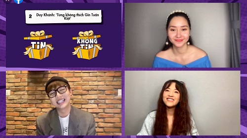 Nói đến đôi bạn thân trong showbiz Việt, không thể không nói đến 2 anh chàng điển trai Duy Khánh và Gin Tuấn Kiệt. Chẳng ai bàn cãi hay nghi ngờ gì về mối quan hệ quá khăng khít này cho đến khi Duy Khánh bật mí bí mật gây “sốc” cho host cũng như tất cả khán giả đang xem livestream rằng bản thân từng không thích Gin Tuấn Kiệt. Tường Vi dù được nghe chính Duy Khánh chia sẻ nhưng vẫn không thể tin nổi. Biểu cảm “ngơ ngác” cùng sự thắc mắc xuất hiện rõ trên gương mặt của host, đủ hiểu cô nàng khó lòng chấp nhận sự thật như thế nào.