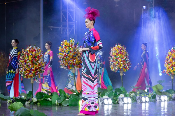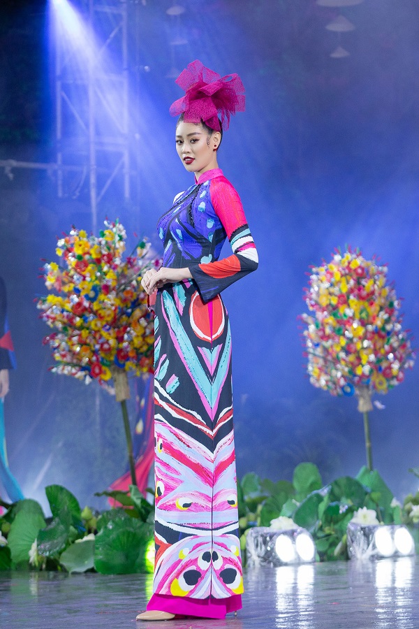 Sau đó, Hoa hậu Khánh Vân nhanh chóng thay trang phục, cùng các người mẫu trình diễn áo dài cho BST của NTK Liên Hương. Là “Người đẹp Áo dài” tại hai mùa của Hoa hậu Hoàn vũ Việt Nam, Khánh Vân chứng tỏ đẳng cấp khi khoác lên người bộ áo dài, trình diễn thướt tha, duyên dáng trên sân khấu. Cô chia sẻ: “Thật tự hào khi mang trên người bộ trang phục truyền thống của dân tộc, Vân hy vọng thông qua Lễ Hội Áo dài năm nay, bạn bè quốc tế sẽ hiểu thêm về tà áo xinh đẹp này”.