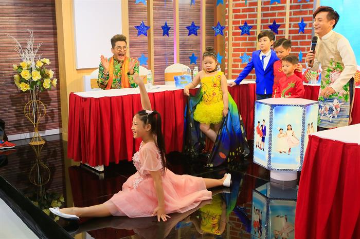 - Khánh Vy (10 tuổi) – con gái ca sĩ Tuấn Hiệp với tài ca hát và nhảy múa.