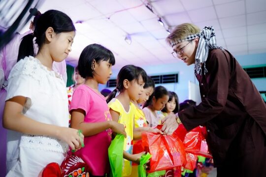 Sau khi lắng nghe và chia sẻ về hoàn cảnh về các bé, Khả Như và Duy Khánh đã cùng chương trình Ngày May Mắn. ekip T Production mang đến một đêm Trung thu thật ấm cúng và vui vẻ cho 200 trẻ em ở nơi đây. Trong tạo hình chú Cuội, chị Hằng, 2 nghệ sĩ đã cùng các bé giao lưu văn nghệ, chơi trò chơi và có một đêm trung thu thật ý nghĩa và đáng nhớ. Sự hồn nhiên ngô nghê của trẻ thơ khiến Khả Như, Duy Khánh nhiều lần bật cười và “rớt miếng” trước những câu trả lời của các em.