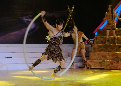 Quốc Huy là nhân tố đầu tiên thể hiện tài năng. Với những chiếc vòng có kích cỡ khác nhau, nhân tố này đã khiến người xem “há hốc mồm” khi xoay người liên tục cùng chiếc vòng.