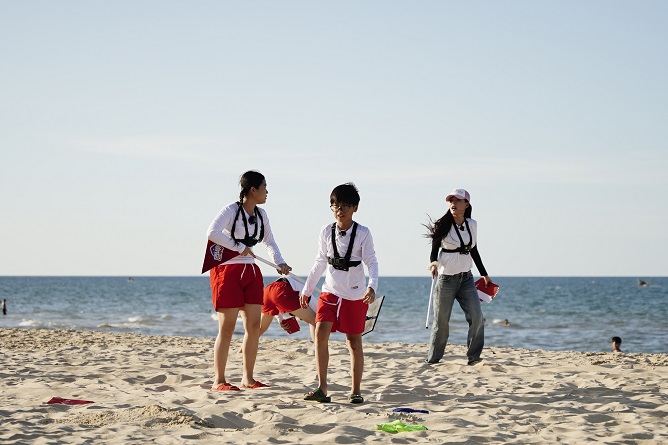 Buổi chiều hôm đó là hoạt động khiến cả hai gia đình phấn khích: đi tắm biển. Nơi cả hai gia đình đến là bãi biển Vinh Thanh – một bãi biển còn hoang sơ và nổi bật với những bờ cát trắng. Chương trình cũng thiết kế thử thách tìm các bao thư để nhận về một “bữa ăn thịnh soạn”. Đồng thời, diễn viên Lương Thế Thành cũng chính thức xuất hiện tại bãi biển này. Khoảnh khắc xuất hiện của anh khiến Thúy Diễm phấn khích. Dù vậy, cậu con trai Bảo Bảo lại chạy đi chơi ở nơi khác khiến Lâm Vỹ Dạ thắc mắc đầy hài hước: “Nhà mình có nhau dữ chưa?”.