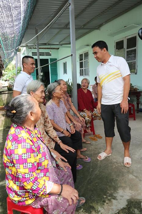 Vừa bước vào nhà Hoàng An, khung cảnh trước mắt toàn là các cô, các cụ lớn tuổi đang ngồi đợi Quyền Linh tới khiến nam MC không khỏi xúc động. Tất cả mọi người đều vui mừng, vỗ tay nhiệt tình trước sự xuất hiện của nam “MC quốc dân”. Không chỉ thế, các cụ còn “bẹo má”, ôm hôn và cho biết đã tới nhà Hoàng An từ rất sớm vì nghe tin có nam nghệ sĩ ghé thăm.