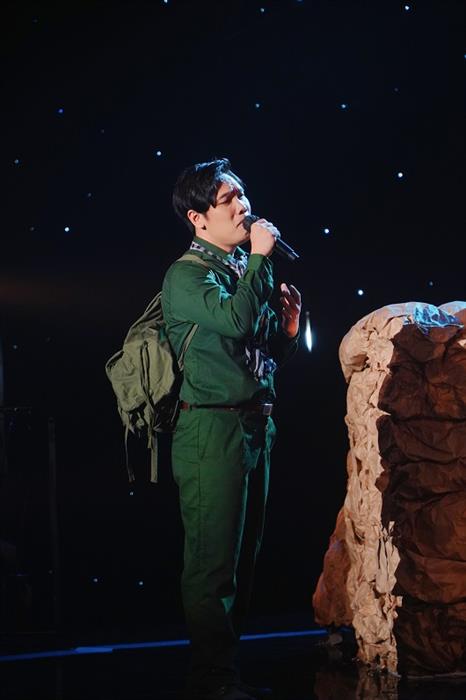 Tiếp đến là phần thể hiện của 2 chàng trai trẻ là ca sĩ Đông Hùng và thí sinh Trung Hiếu qua liên khúc Những Đôi Mắt Mang Hình Viên Đạn – Lời Anh Vọng Mãi Ngàn Năm – Giai Điệu Tổ Quốc. Dường như chủ đề “Chuyện Kể Về Các Anh Hùng Dân Tộc Việt Nam” nghe tuy là mang dáng dấp trung niên, nhạc của cách mạng của thời ông cha nhưng không ngờ lại được thể hiện qua giọng hát đầy sự uy lực và khí thế hào hùng của chàng trai trẻ chỉ mới 20 tuổi – Trung Hiếu. Giọng hát của 2 chàng trai kết hợp hoàn hảo cùng nhau, với tone giọng trầm ấm nam ca sĩ Đông Hùng thể hiện khí thế sức mạnh của người lính cường tráng Việt Nam, năng lượng “hình viên đạn” mà Đông Hùng tạo ra khiến cho giám khảo Quang Hà không thể ngừng vỗ tay cảm thán.