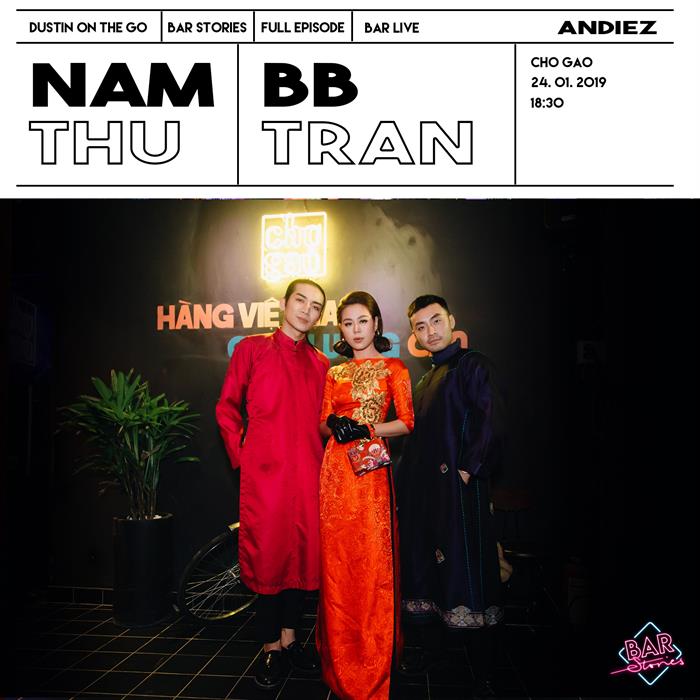 Còn với chuyện người yêu cặp bồ hay ngoại tình, cô hoàn toàn không chấp nhận hoặc tha thứ. Tại Bar Stories, ngoài sự xuất hiện của Nam Thư và BB Trần còn có màn trình diễn hát live của ca nhạc sĩ trẻ Andiez- người thành công với 2 ca khúc hit “1 phút” và “Suýt nữa thì”.
