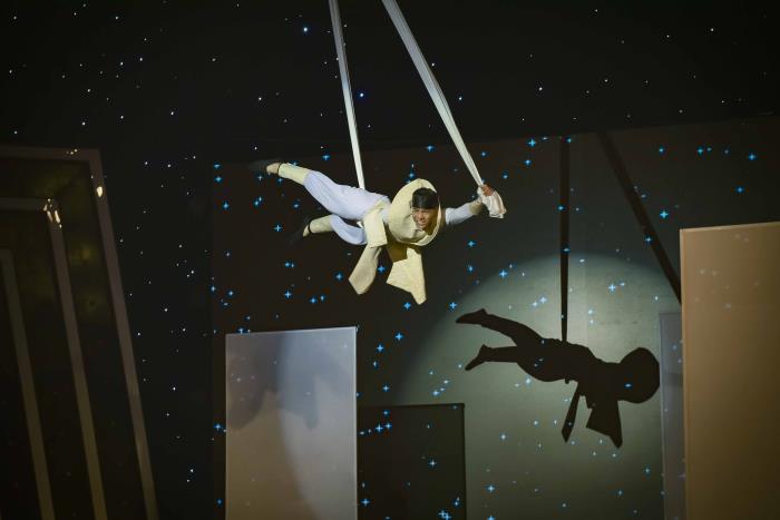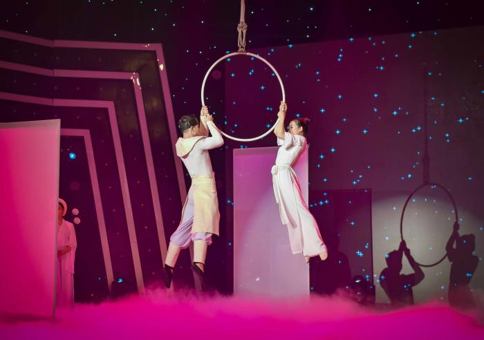 Nam vương Cao Xuân Tài đã hóa thân vào nhân vật mang tên Trương Sinh, vô cùng đau đớn vì đã hiểu lầm vợ. Cao Xuân Tài biểu cảm nỗi đau đớn day dứt tột cùng bằng màn trình diễn múa hắt bóng qua những tấm khung màn chiếu rồi sau đó là xiếc đơn bay lượn trên không với những dải lụa, kết hợp cùng nữ diễn viên xiếc mang kết những pha tạo hình song đôi vô cùng đẹp mắt.