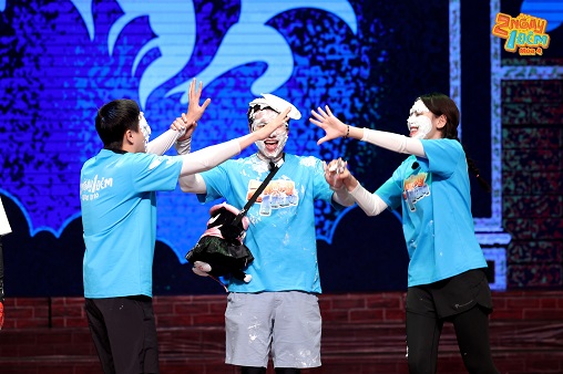 Cứ ngỡ bắt đầu từ LAMOON đã mượt như thế thì khả năng bị bôi kem sẽ không nhiều, thế nhưng đến lượt 2 đồng đội là Trường Giang – HIEUTHUHAI thì lại sai lời khá nhiều. Đã thế còn bị đối thủ chọc ghẹo cản phá, liên tiếp “bắt bẻ” khiến cả đội liên tiếp bị bôi kem trắng cả mặt.