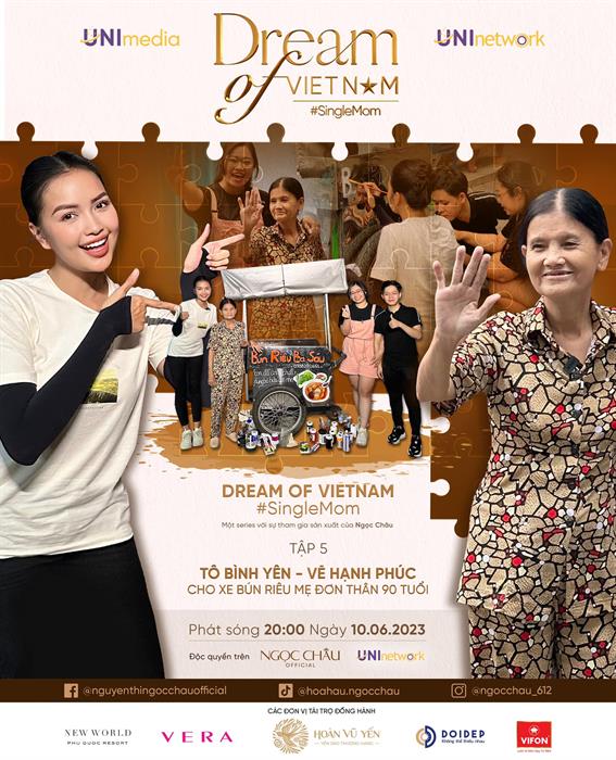 Tintuc - Bất ngờ xảy ra trong tập 5 của digital series về mẹ đơn thân Dream Of Vietnam, Ngọc Châu đã quyết định quay trở lại thăm nhân vật của tập 3 – bà Sáu Hường cùng cô Huệ, để trao tặng hai món quà đặc biệt: Một là chiếc thẻ ngân hàng cùng với số tiền quyên góp được, Hai là chiếc xe bún riêu được “tân trang” bởi chính bàn tay của Ngọc Châu cùng nhóm vẽ Hạnh phúc.