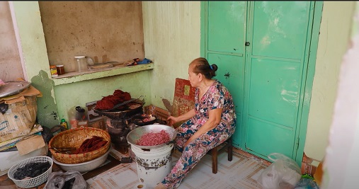 Trước đây, dì vừa làm vừa bán trên đường Lý Thường Kiệt nhưng giờ đây, người phụ nữ ấy còn phải chăm lo cho đứa con gái bệnh tâm thần cùng hai đứa cháu nhỏ dại. Dì trải lòng: “Con của dì bệnh, giờ đây không có ai lo cho nó, dì ở nhà luôn, không đi bán nữa mà tự ở nhà làm rồi bỏ cho người ta bán. Chứ giờ đi bán thì ai ở nhà chiên, ai đâu mà giữ mấy đứa cháu. Con dì mà nó tỉnh thì không nó gì mà nó lên cơn thì không có bỏ được. Ba hồi thì nó tỉnh lắm thì kêu cửa nó mở cửa, còn không thì nhiều khi nó lấy cây nó tính đánh dì luôn: “Đi ra khỏi nhà không được ở nhà tui”. Tối thì nó muốn mở cửa thì mở, không mở thì dì đi ngủ chỗ khác. Bữa khuya quá, người ta không mở cửa cho ngủ nhờ thì dì ngủ ngoài cửa. Ba bà cháu ngủ ở đằng trước luôn, muỗi quá chịu không nổi, ngồi quạt cho cháu chứ dì có ngủ được đâu”. Người phụ nữ có mạnh mẽ đến mấy cũng có những lúc yếu đuối. Nỗi buồn ấy cứ vậy theo thời gian mà hằn vết sẹo sâu trong lòng dì nhất là khi người con trai cả cũng qua đời. Dì nhớ lại: “Lặn lội làm, bây giờ người ta mua bánh được bao nhiêu thì cô cũng ráng cô làm, bị bệnh cũng làm. Đến nỗi hồi thằng con của dì bị bệnh, khi nó gần qua đời, nó dặn: “Mẹ ơi mẹ, con mất rồi thì mẹ phải nghỉ sớm, đừng có làm khuya, không ai lo cho mẹ”. Cứ nghĩ đến lời nó dặn, nhớ nó rồi khóc”.