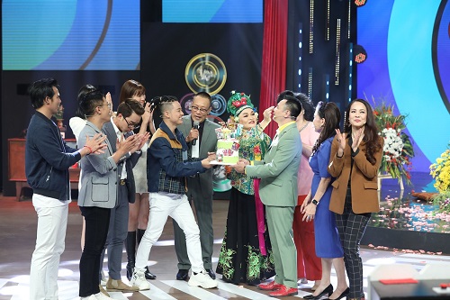 Rất bất ngờ khi nhận được món quà này, NSND Tự Long đã bước lên sân khấu cùng hòa giọng và ca khúc… kéo dài mãi không ngưng. MC Lại Văn Sâm đùa rằng nếu không dừng lại và chuyển qua phần khác, có lẽ đội trưởng Tự Long sẽ còn hát mãi bài “vọng cổ sinh nhật”.