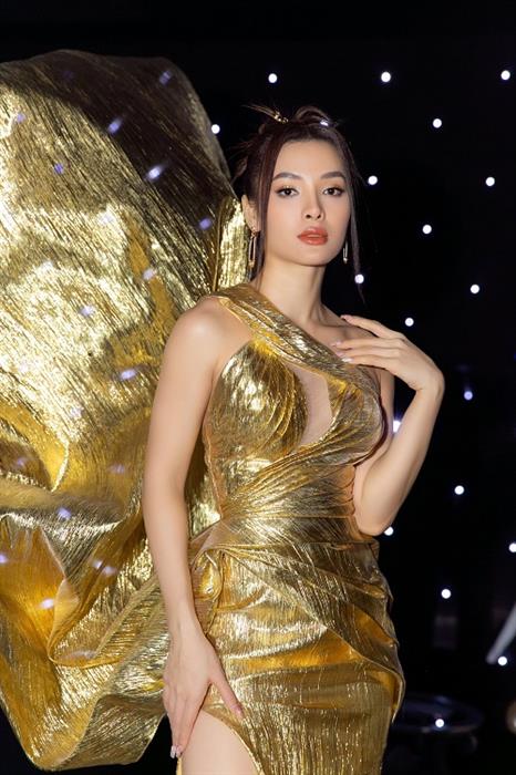 Trong số các trang phục được Phương Trinh Jolie diện tại Đấu Trường Ngôi Sao 2022, điển hình nhất là loạt thiết kế ấn tượng đến từ NTK Đỗ Long. Với các poster cùng những ấn phẩm quảng bá cho chương trình, Phương Trinh Jolie chọn thiết kế cắt xẻ táo bạo và bắt mắt với nhũ vàng, chất liệu dệt kim óng ánh góp phần tăng sự chú ý với người xem.