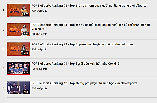 Lướt thêm trên POPS eSports, kênh hiện đã cập nhật 2 chương trình có chủ để khá thú vị và hút người xem khác là bản tin Thể thao điện tử trong tuần và POPS eSports ranking.