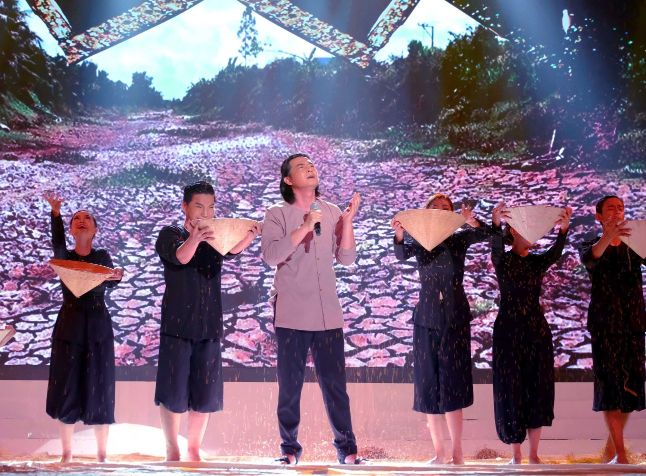 Nam diễn viên lựa chọn thể hiện liên khúc Chiều nước lũ (sáng tác: Vinh Sử) và Nước mặn miền Tây (sáng tác: Sơn Hạ) nói về những đau thương, mất mát của người dân trong siêu bão Linda 1997 và mới đây nhất là hạn mặn khốc liệt tại vùng Đồng bằng sông Cửu Long.