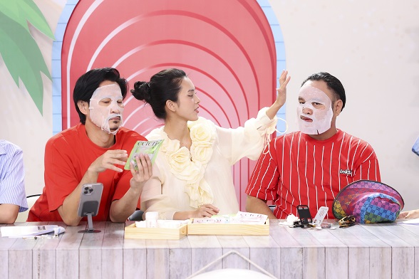 Ngoài ra, những khoảnh khắc như Pu Mét 7 liên tục bị đàn anh Vinh Râu “dụ” ăn bánh kẹo ngọt, màn review và đắp mặt nạ “dưỡng nhan” trên sóng trực tiếp hay hỗ trợ nhau làm mẫu cho gian hàng thời trang của bộ đôi Huy Khánh – Vinh Râu cũng là điểm nhấn thu hút người xem.