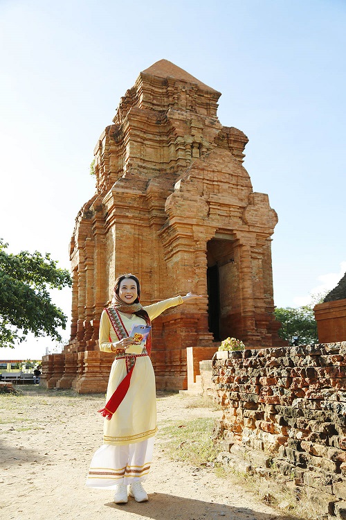Tiếp tục chuyến hành trình khám phá các vùng đất, tìm kiếm người chơi cùng với chương trình Quà Tặng Bất Ngờ. Địa điểm lần này chính là tháp Chăm Po Sah Inư, một trong những công trình kiến trúc nổi tiếng còn sót lại của Vương quốc Chăm Pa thời xa xưa. Quay hình ở một di tích lịch sử vô cùng đặc biệt, nàng host xinh đẹp của chương trình – Sam đã nắm bắt ngay cơ hội diện bộ trang phục truyền thống của người Chăm. Dưới ánh nắng chói chang của vùng đất Bình Thuận, Sam càng trở nên rạng rỡ, duyên dáng hơn trong bộ trang phục dân tộc. Cô nàng đã thích thú tạo dáng bên tháp Chăm, chụp lại khá nhiều ảnh kỷ niệm.
