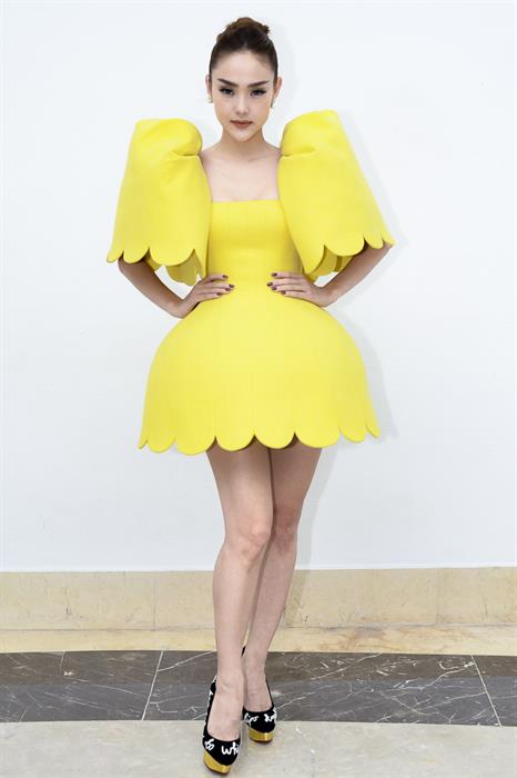 Huấn luyện viên Minh Hằng lại hoàn toàn trái ngược khi xuất hiện như một nàng công chúa trong chiếc đầm vàng của nhà thiết kế Nguyễn Công Trí. Không chỉ trông lạ mắt, set đồ của Minh Hằng còn đem lại một cảm giác vô cùng ngọt ngào và mới mẻ cho sự xuất hiện của mình.