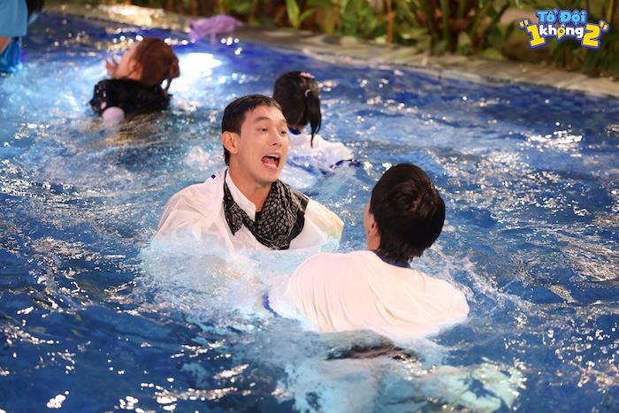 Trong phần phát sóng những nội dung chưa từng lên sóng trong tập Recap này, thử thách 4 phút ở hồ bơi tại chặng Gia Lai đã nhận được nhiều sự quan tâm của khán giả. Vốn dĩ khi nhắc đến hồ bơi ở Tổ Đội “1 Không 2”, chi tiết làm khán giả nhớ nhất có lẽ là màn “không biết đứng nước” của Quang Hùng ở chặng miền Tây. Nên cứ ngỡ lần này nam ca sĩ cũng sẽ có thêm một “giai thoại” khác ở địa điểm này với hồ bơi.