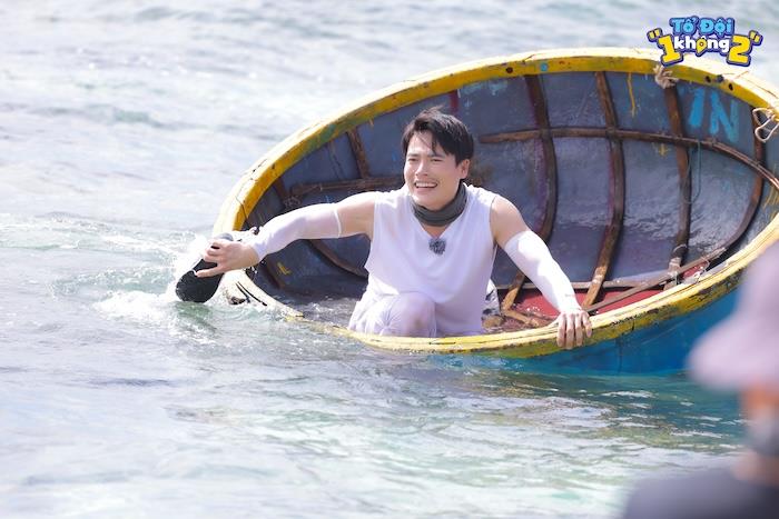 Sau một hồi “vật lộn” để tìm kiếm các quả bóng, dường như chỉ có mỗi Võ Tấn Phát vẫn tìm chưa ra. Trong khi dàn cast và khách mời đã về đích, nam diễn viên vẫn còn loay hoay, leo thẳng vào thuyền thúng để tìm kiếm nhưng kết quả không mấy khả quan hơn. Điều này vô tình lại tạo thành “thời cơ” thuận lợi để Thuý Ngân “ra tay”.