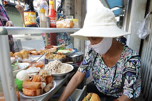Dì Hai Vân tên thật là Lê Thị Thu Vân, năm nay 64 tuổi. Bắt đầu bán bánh mì từ năm 25 tuổi, tính đến nay dì đã bán bánh mì của mình gần 40 năm. Thế nhưng số năm dì gắn bó với tủ bánh mì này lại lên đến hơn 60 năm vì chiếc tủ bánh mì cũ kỹ cùng bí kíp làm nên hương vị thơm ngon của nó là tuổi thơ của dì, là những gì mà mẹ dì truyền lại. Mỗi ngày, cứ tầm 4 giờ sáng, khi ánh đèn đường còn chưa sáng tỏ, dì Hai Vân đã bắt đầu kéo chiếc tủ bánh mì xếp đầy đủ nguyên liệu đi dọc khắp các con phố, nẻo đường. Bánh mì của dì Hai Vân có đa dạng các loại nhân như nhân thịt, chả, cá hộp, xíu mại trứng muối nhưng có lẽ đặc biệt nhất chính là nhân bánh giá. Miếng bánh giá với lớp vỏ giòn rụm hòa quyện với vị tươi mát của giá ăn cùng với bì dai và nước sốt chua ngọt khiến người ăn nếm thử một lần là khó quên. Một ổ bánh mì đầy ụ nhân được dì Hai bán với giá 12 ngàn đồng, ai không có đủ tiền dì vẫn sẵn lòng vừa bán vừa cho. Dì vui vẻ nói: “Cô phải ráng bán chứ. Mình còn sức khỏe mình đi bán chừng nào hết sức khỏe thì thôi”.