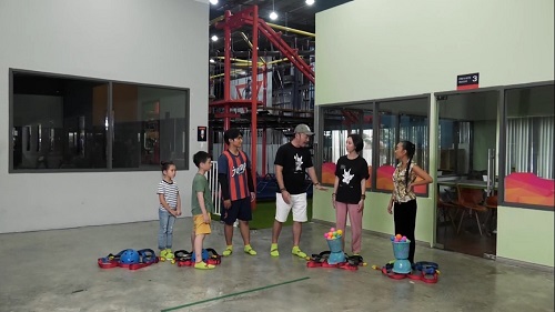 Tại đây sẽ chia làm 2 đội chơi đội người lớn gồm “hội mẹ bỉm sữa” Thu Trang – Đoan Trang và “hội couple siêu đáng yêu” Andy – Sol, riêng bố Tiến Luật sẽ làm trọng tài. Cả hai đội sẽ thực hiện các thử thách như vượt địa hình, leo núi,…Hậu chia đội, Thu Trang tranh thủ trêu con trai “Ra chiến trường rồi mẹ con gì nữa” khiến Tiến Luật cười bò.