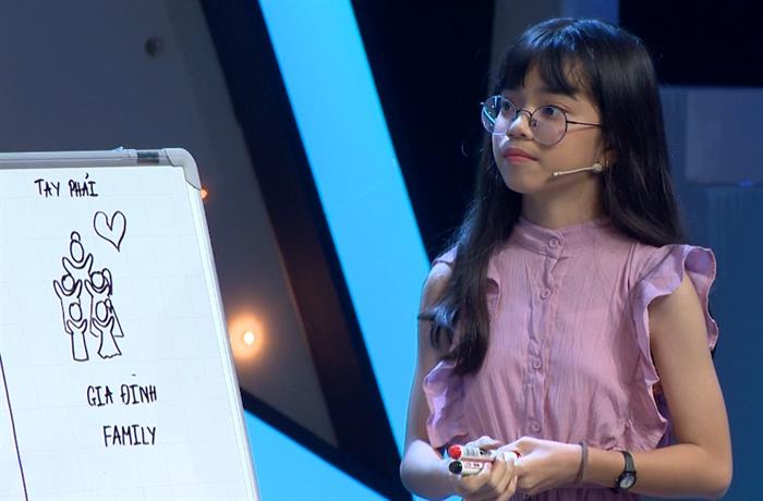 Thí sinh nhí Nguyễn Hoàng Yến Trang (9 tuổi, đến từ Long An) hoàn toàn thuyết phục ban giám khảo bằng một bức tranh vẽ bằng hai tay cực đẹp.