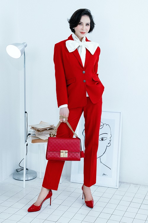 Là một doanh nhân thành đạt, MC Thanh Mai thường gắn liền với các bộ âu phục. Song cô chọn các gam màu nổi bởi phù hợp làn da trắng ngần của mình.