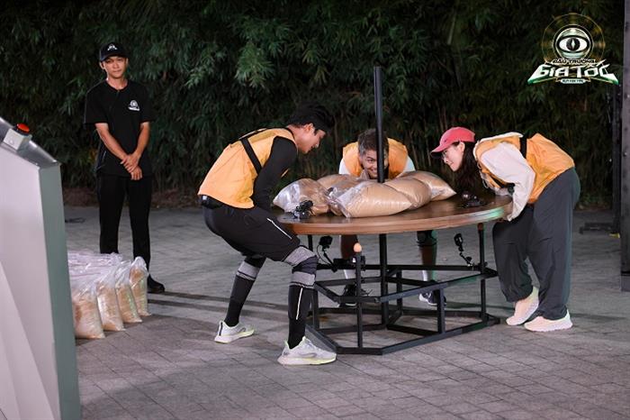 Không chỉ chật vật với những con số hóc búa, bài kiểm tra thể lực tuần này cũng khiến cả hai đội phải “toát mồ hôi” để chinh phục. Ở thử thách tiếp theo, các thành viên buộc phải giữ thăng bằng cho chiếc bàn chất đầy bao cát trong khi đồng đội thực hiện phần giải mã.