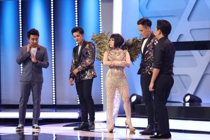Khoác cánh thiên thần cùng chiếc váy ôm sát đính đầy hột lấp lánh khiến ai thấy Việt Hương đều tưởng rằng tại sân khấu “Người bí ẩn” đang có lễ hội hóa trang. Không những thế, Việt Hương còn đầu tư thuê hẳn hai vệ sĩ riêng để bảo vệ và dìu bước cho nữ nghệ sĩ. Với phong cách “chanh sả” và quý tộc, nữ nghệ sĩ quyết định im lặng để giữ vững thần thái “im mới sang”. Nữ khách mời Cát Tường dù xuất hiện trong chiếc váy kim sa nhưng vẫn bị lu mờ trước Việt Hương. Cảm thấy bất lực trước đàn chị, Trấn Thành thì không dám đứng gần còn Trường Giang thì nhờ “cất” đàn chị Việt Hương vào trong do ăn bận khác người phàm. Thần thái sang chảnh liền sụp đổ khi Việt Hương bị nhấc bổng và lôi đi giữa sân khấu khiến các nghệ sĩ cười không ngớt.