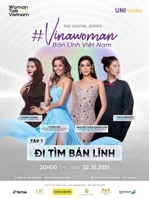 Tintuc - Tập đầu tiên của digital series “VINAWOMAN – Bản lĩnh Việt Nam” mang tên “Đi tìm bản lĩnh” sẽ chính thức lên sóng lúc 20h thứ Bảy ngày 02/10/2021 trên fanpage Woman Talk Vietnam và kênh youtube UNI NETWORK, với sự tham gia của các khách mời: NTK Thuỷ Nguyễn, Hoa hậu Hương Giang, Hoa hậu H’Hen Niê, Hoa hậu Khánh Vân.