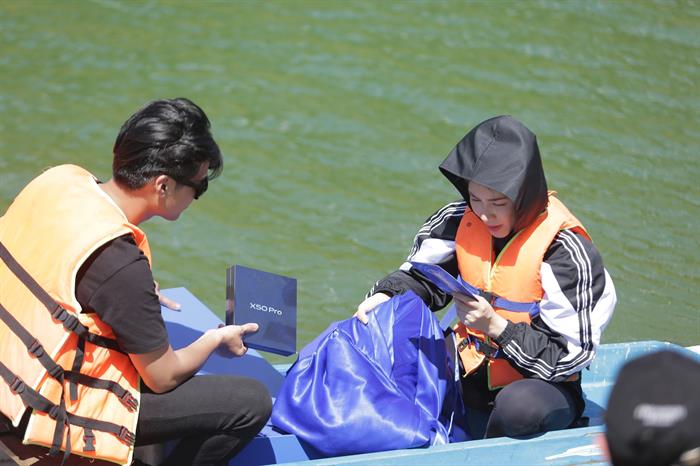 Hoà Minzy lại rất biết tận dụng cơ hội khi liên tục “nhờ” Võ Hoàng Yến chỉ cách tạo dáng vừa đẹp lại, vừa dễ thực hiện nhất. Hai nhiếp ảnh gia dù đã có kinh nghiệm chụp ảnh nhiều năm nhưng cũng khá loay hoay khi lần đầu trải nghiệm thực hiện photoshoot bằng điện thoại, mà còn lại là trên chiếc thuyền đang thả trôi trên mặt nước.