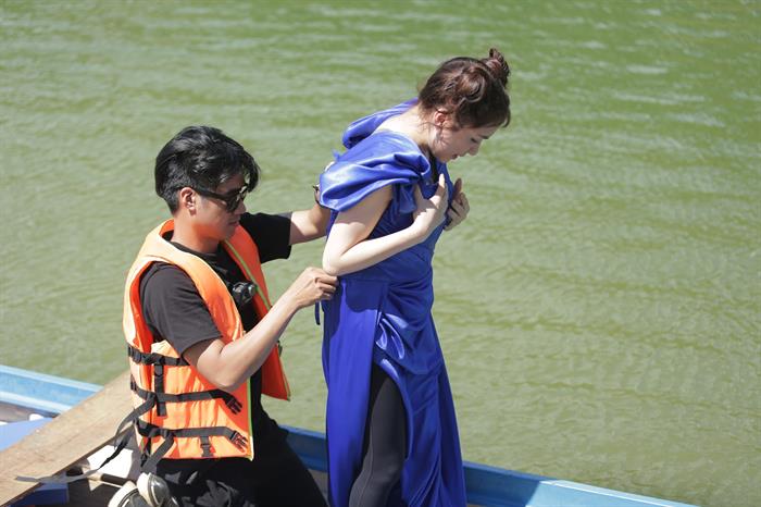 Ngay sau khi sẵn sàng, cả hai bắt đầu bước vào buổi photoshoot lạ lùng và thú vị nhất từ trước đến giờ. Võ Hoàng Yến như cá gặp nước, liên tục tạo dáng đỉnh cao, với nhiều biểu cảm xuất thần, tuy nhiên dù đã là một siêu mẫu nhưng Võ Hoàng Yến vô cùng loạng choạng khi vừa phải giữ thăng bằng vừa phải tạo dáng trên thuyền đang chông chênh.