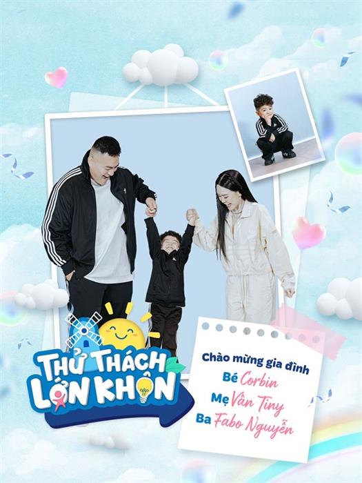 Tintuc - Sau khi công bố gia đình đầu tiên xuất hiện trong Thử Thách Lớn Khôn là gia đình Trương Mỹ Nhân, Phí Ngọc Hưng và bé Bona thì hôm nay nhà sản xuất chương trình tiếp tục xác nhận gia đình Youtuber Fabo Nguyễn, Vân Tiny và con trai Corbin sẽ là gia đình tiếp theo có mặt trong Thử Thách Lớn Khôn mùa 2.