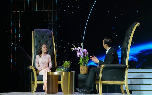 Bên cạnh những chia sẻ về khát vọng dành cho hoa lan, nữ nông dân tài ba còn thể hiện tình yêu âm nhạc khi có sân khấu kết hợp với ca sĩ Đông Đào cùng ca khúc Hương Tóc Mạ Non.